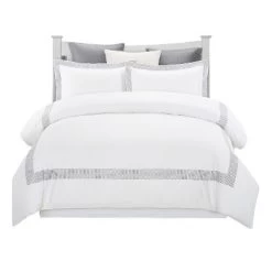 Modern Embroidered Cherry Blossom Floral Cotton Duvet Cover And Pillow Sham Set – Blue Nile Mills