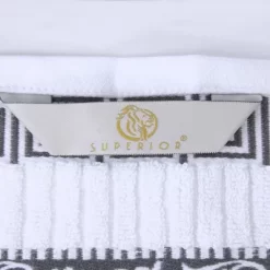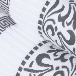 Take the vintage look of your bathroom to the next level with the Cotton Medium Weight Floral Border Infinity Trim Bathroom Towel Set by Blue Nile Mills. These ultra-plush and fluffy towels will sop up moisture effortlessly, keeping you toasty warm as soon as you step out of the shower or bath. Featuring an elegant floral scroll dobby border with a unique infinity trim, this set will add charm to any vintage, classic, or traditional home style. These beautiful towels are available in a variety of colors to match your existing bathroom decor.