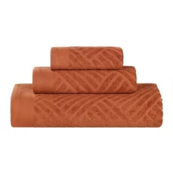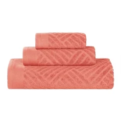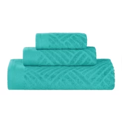 Add a touch of elegance and charm to your bathing space with the Basketweave Luxury Egyptian Cotton 3 Piece Assorted Towel Set by Blue Nile Mills. Our most luxurious medium weight Egyptian Cotton towels provide comfort, durability, and versatile absorption. These bathing essentials sop up moisture effortlessly to help keep you warm and dry. With a range of vibrant colors to choose from, you can easily add color and texture to any master bathroom, powder room, or guest bathroom. This coordinated set features a flatweave solid border with a contrasting jacquard basketweave design throughout.