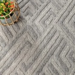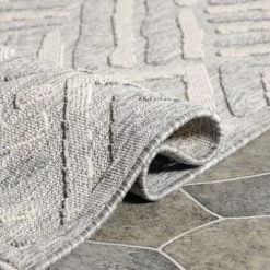 The Contemporary Geometric Abstract Indoor Outdoor Area Rug by Blue Nile Mills will create a serene and relaxing atmosphere in your favorite space. Crafted to weather the elements while remaining soft and long-lasting, this beautiful rug will add style to your patio, deck, or indoor rooms. The abstract design of this rug features a high-low pile height bringing a texture-rich feel to your floors. The family-friendly polypropylene fibers can withstand high-traffic areas including outdoor spaces.This rug has a 0.24 inch rug thickness at its highest that cleans easily and can fit under most doors.