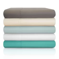 Bring subtle elegance into your bedroom sanctuary with the Mittie Cotton Blend Solid Deep Pocket Luxury 6 and 4 Piece Bed Sheet Set by Blue Nile Mills. This sheet set is crafted from a lightweight and silky-soft Cotton blend and features a chic two pintuck hem stitch detail. This luxurious sheet set is wrinkle-free, breathable, and long-lasting. Each piece in this bedding set is ultra-soft and features a luminous sheen from the sateen weave finish. This set includes one flat sheet, one fitted sheet, and four pillowcases for a complete bedroom makeover