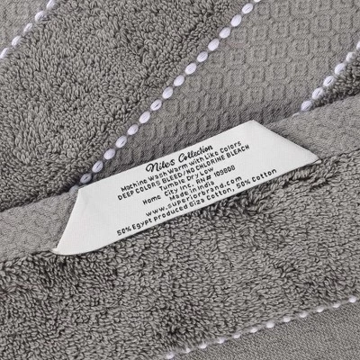 Completely change the look and comfort of every bathroom in your home with the Cotton Diamond Dobby Border Ultra-Plush 12 Piece Towel Set by Blue Nile Mills. Our Giza cotton towels feature impressive absorbency, a smooth texture, and silky feel for a luxury spa-like experience at home. The heavyweight thickness of each towel is durable and perfect for the bath, poolside, or at the beach. For a refined finish, each piece in this bundle features an elegant diamond dobby border and a hanging loop for effortless drying. These towels are available in Navy Blue, Charcoal, Chocolate, White/ Black, White, Ivory, Platinum, Gold, and Forest Green color options to match your bathroom decor style. This set includes 4 face towel/ washcloths, 4 hand towels, and 4 bath towels to complete your bathroom essentials.