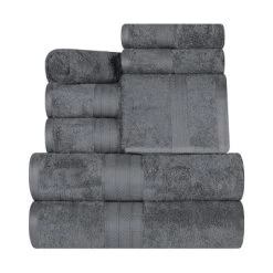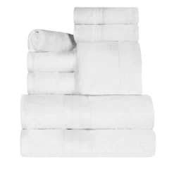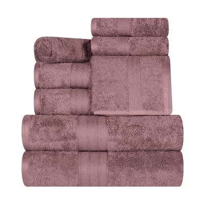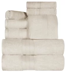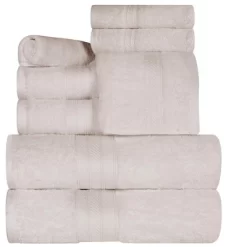 Incredibly soft and quick-drying, the Rivendale Cotton Solid Assorted 8-Piece Towel Set is just what you need to bring the spa-vibe home. This premium Long Staple Combed Cotton construction boasts a heavy towel weight, making each towel thick and highly absorbent to keep you warm and get you dry quickly. These ultra-plush and fluffy towels will soak up moisture effortlessly, keeping you toasty warm as soon as you step out of the shower or bath. Available in a range of color options to easily mix and match with your existing bathroom dcor, each towel in this bundle features a decorative dobby border for modern style.