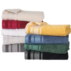 Bring spa-like style and functionality to your bathroom with the Cotton 12 Piece Bathroom Towel Set by Blue Nile Mills. Our soft and fluffy cotton towels have a medium weight to keep you warm and get you dry quickly. The terry loop weave makes these towels the perfect bathroom essentials for the whole family. Durable and highly absorbent, these towels retain their softness after every wash. Available in a variety of color options, upgrade your bathing experience with the dreamy look and feel of these fluffy towels.