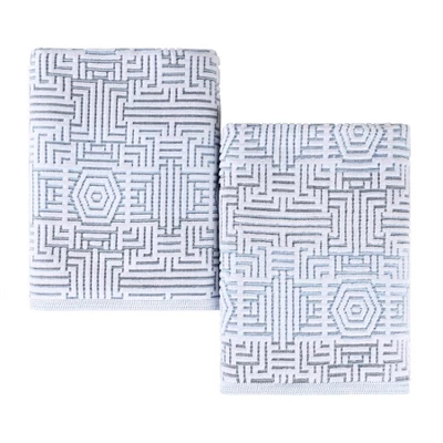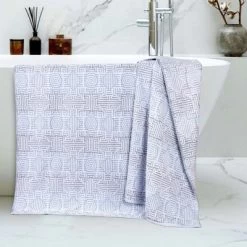 Wrap yourself in dreamy spa-like softness with the Cotton Modern Geometric Jacquard 550 GSM Bath Sheet Set of 2 by Blue Nile Mills. Our medium weight cotton bath sheets provide comfort, durability, and versatile absorption, perfect for the shower, bath, or beach. These plush and fluffy bath sheets will sop up moisture effortlessly, keeping you warm and dry. Featuring a geometric jacquard design, these elegant oversized towels are available in gold, blue, platinum, and charcoal color options to seamlessly match your bathroom style. This bathroom essentials set includes 2 bath sheets to wrap yourself in luxury comfort every day.