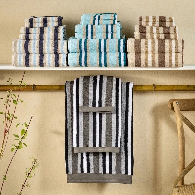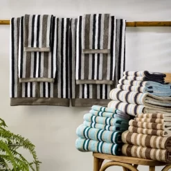 Decorate your bathroom with the Cotton 2-Piece Bath Sheet Set by Blue Nile Mills. Expertly crafted with premium Cotton with a plush and ultra-soft texture. These bath sheets are durable and long-lasting. Choose from a variety of colors with a striped pattern and matching, solid border. These bath sheets will elevate the look of your master or guest bathroom.