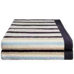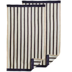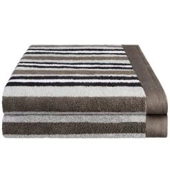 Give any bathroom a quick refresh with the Rosoman Cotton Modern Stripe 2-Piece Quick Drying Bath Towel Set. This premium Cotton construction boasts a medium towel weight, making each towel thick, fluffy, and highly absorbent to keep you warm and get you dry quickly. These ultra-plush towels will soak up moisture effortlessly, keeping you toasty warm as soon as you step out of the shower or bath. Each bath towel in this 2-piece set boasts a festive stripe pattern and a matching, solid border to bring a modern flourish to any master or guest bath. The attached hanging loop allows you to hang your towel anywhere for quick drying.