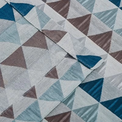 Stylish yet practical, the Worley Geometric Semi-Sheer Jacquard Curtain Panel Set will highlight the look of your windows while providing privacy. Made from100-percent Polyester and complete with a stainless, polished grommet topper, this panel pair is both durable in construction and fashionable. The jacquard woven triangle trellis pattern brings charm and whimsy to your surrounding décor. This textured panel pair is easy to hang and is the perfect finishing touch to any transitional or modern interior.