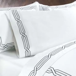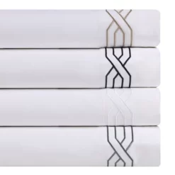 Luxury 1200 Thread Count Premium Cotton Geometric Scroll Embroidered 4 Piece Bed Sheet Set By Blue Nile Mills