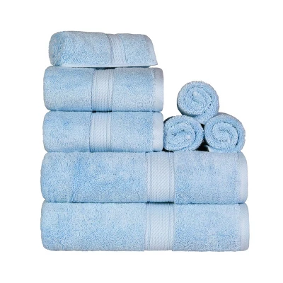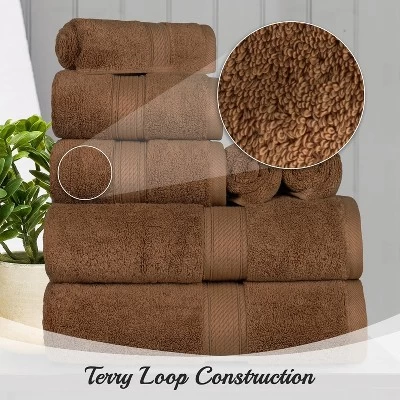 - Set Includes: Two (2) Bath Towels, Two (2) Hand Towels, and Four (4) Face Towels