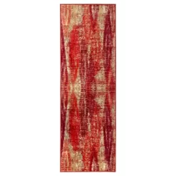 Elevate the beauty of your tile or hardwood floors in an instant with the Modern Abstract Non-Slip Washable Indoor Runner or Area Rug by Blue Nile Mills. Made with 100% Nylon and a soft 0.18 inch pile height, this rug can handle the high-traffic spaces of your home while remaining cozy underfoot. This abstract rug features vibrant shades of warm reds and oranges splattered across a soothing backdrop of light blue. With a modern feel and edgy appearance, this rug will draw the eye in either your home or office space. This rug is machine washable & rug well made with non-slip rubber backing. Room Types: Entryway, Kids Room, Baby Room, Mudroom, Any Room, Basement, Bedroom, Dining Room, Foyer, Hallway, Home Office/Study, Kitchen, Living Room, Lounge.