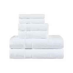 Enhance your bathroom style with the Woodburn Modern Solid Classic Premium Luxury Cotton 6 Piece Bath, Face, and Hand Towel Set by Blue Nile Mills. This bold and elegant towel set will tie together any bathroom decor style including; Modern, Casual, Classic, or Traditional. The solid design with a classic dobby border will seamlessly elevate the mood of your space. The length and strength of premium Cotton makes these towels naturally strong and soft. For comfort and durability, each towel provides versatile absorption. These delightful towels are available in a variety of vibrant colors to match your bathroom decor.