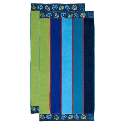 The Dimity Novelty Summer Shells Cotton Oversized Beach Towel makes for the perfect summer accessory at the beach or lounging poolside. This festive design displays stripes in varying shades of blue and green that are surrounded by dainty shells so you can relax and sunbathe in style. Crafted from Cotton, this generously sized towel can survive any beach, lake, or poolside adventure while still being plush enough to relax and sunbathe. This towel features soft velour on one side and fast-drying terry construction on the other side for maximum absorbency and style. Perfect for adults and kids alike, this beautiful towel offers a smooth, cozy surface for lounging.