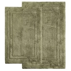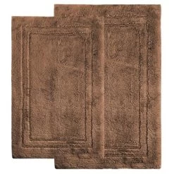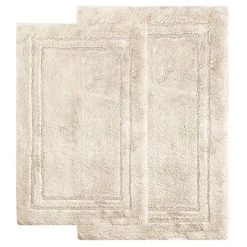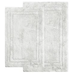 Step out of the bath or shower and into pure luxury with the Chidester Non-Slip Solid Bath Rug Set. This stylish duo is crafted from premium Cotton fibers and is complete with a spray latex backing to prevent slipping. Each set includes 1 large bath rug that measures 24” x 36” and 1 small bath rug that measures 20” x 30”. These rugs come in your choice of solid colors with a sculpted double border trim that adds color and texture to your décor. Create the luxury and pampered atmosphere of the spa in your own master or guest bath with these plush, absorbent, and durable rugs.