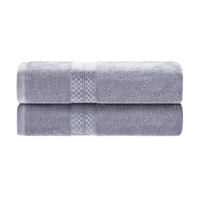 Indulge in the super soft luxury of the Greenbury Rayon from Bamboo and Cotton Blend 2-Piece Bath Towel Set. Rayon from Bamboo is silky-smooth, odor-resistant and moisture-wicking to help soak up water and get you dry fast. These gorgeous towels are crafted from a blend of Rayon from Bamboo and Cotton fibers that provide a buttery smooth feel and are highly absorbent. These towels feature a hefty grams per square meter towel weight for increased softness and long lasting durability. Each set comes with 2 bath towels that measure 30” x 54” each. Available in multiple solid colors with a decorative checkered trim, these towels have a modern flair that looks great in any master or guest bath.