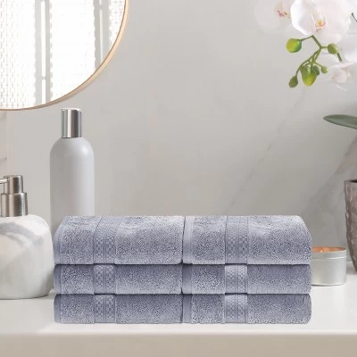 Add the perfect accessory to your bathroom with the Greenbury Rayon from Bamboo 6-Piece Hand Towel Set. The blended Rayon from Bamboo and Cotton construction has a luxurious, buttery smooth texture. These towels are highly absorbent to help get you dry quickly. Rayon from Bamboo is silky smooth, odor-resistant, and moisture-wicking to help soak up water fast. For added comfort, these towels feature a hefty grams per square meter towel weight for increased softness. This beautiful bundle includes 6 hand towels that feature a decorative checkered trim for added modern flair.