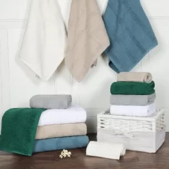 Create an elegantly coordinated bathroom look with the Quick-Dry Ribbed Solid Highly Absorbent Assorted Cotton Bath Towel Set by Blue Nile Mills. Crafted from exquisite premium Cotton, each bath towel, hand towel, and face towel feels ultra-soft on your skin. Each towel in this set has a medium towel weight for maximum absorbency and comfort. These towels feature a solid color with a ribbed design that is soft, fluffy, and quick-drying.