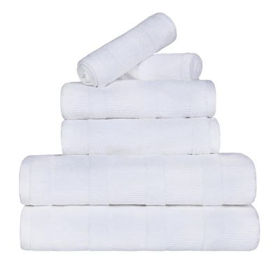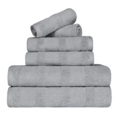 Indulge your skin after every wash with the Ribbed Cotton 550 GSM Bath Towels by Blue Nile Mills. Crafted from naturally soft cotton, each towel is soft on your skin and highly absorbent to keep you warm and dry after you step out of the shower or bath. The medium towel weight gives each towel a lofty feel to transform your bathroom into a personal spa. Featuring a ribbed high-low design that is fluffy and quick drying, this towel set is an everyday essential. With a range of colors to choose from, bring a modern flourish to any master bath, powder room, or guest bath with this indulgently soft towel set.