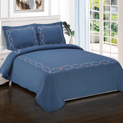 The Amato Traditional Floral 200-Thread Count Cotton Shabby-Chic Embroidered Classic 3-Piece Duvet Cover Set adds a sophisticated flourish with its charming floral pattern that will enhance any bedroom. Expertly crafted from 100-percent Cotton, this stunning embroidered design is simple and yet wonderfully whimsical. The enchanting embroidered pattern, clear button closure on the duvet, and Twill weave construction will create an understated elegance in your bedroom.