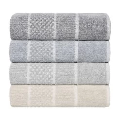 Escape to a haven of tranquility with the Viscose Cotton Blend Medium Weight Soft Textured Checkered and Ribbed 12 Piece Towel Set by Blue Nile Mills, designed to provide an unparalleled sensory experience. The delicate checkered and ribbed design, inspired by classic textiles, creates a timeless aesthetic that complements any decor, adding a touch of understated elegance to your space. Meticulously crafted from a blend of the finest cotton and viscose, these towels are a testament to enduring quality and unparalleled comfort. Embrace the art of self-care and indulge in the simple pleasure of a truly luxurious towel.