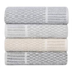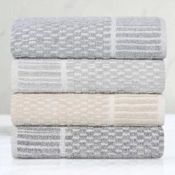 Transform your bathroom into an oasis of tranquility with the Viscose Cotton Blend Medium Weight Soft Textured Checkered Ribbed Border 12 Piece Towel Set by Blue Nile Mills, designed to provide an unparalleled sensory experience. The delicate two-toned checkered pattern and elegant ribbed border create a timeless aesthetic that complements any decor. Meticulously crafted from a blend of the finest cotton and viscose, these towels are a testament to enduring quality and unparalleled comfort. Embrace the art of self-care and indulge in the simple pleasure of a truly luxurious towel.